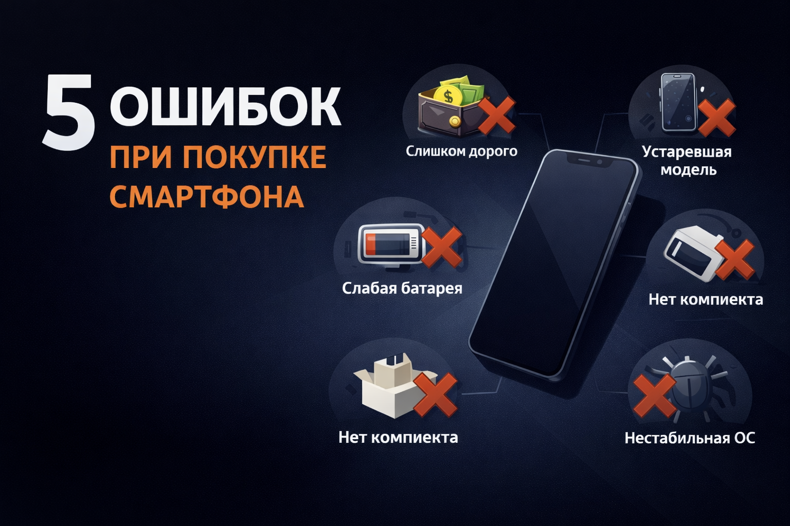 Пятая ошибка из списка «5 ошибок при покупке смартфона» – гнаться за минимальной ценой и закрывать глаза на документы, происхождение устройства и условия гарантии. Здесь риски максимальные: восстановленный смартфон под видом нового, неоригинальные комплектующие, проблемы с активацией, сомнительный ремонт в прошлом, отсутствие нормального сервиса по гарантии.