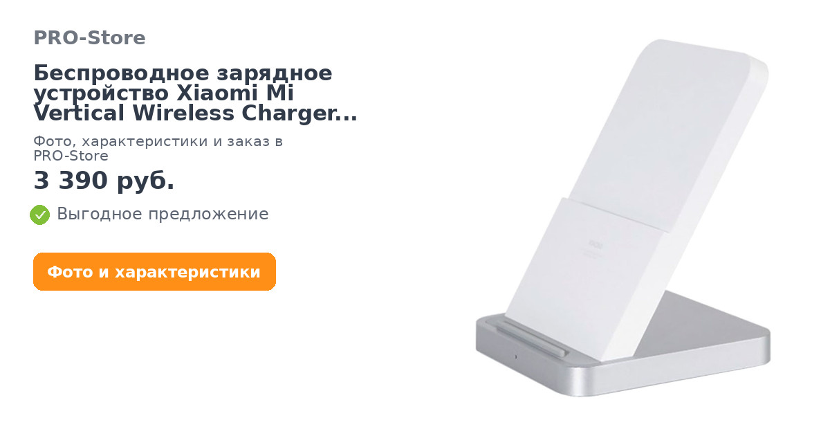 Беспроводное зарядное устройство Xiaomi Mi Vertical Wireless Charger 30W (MDY-11-EG)