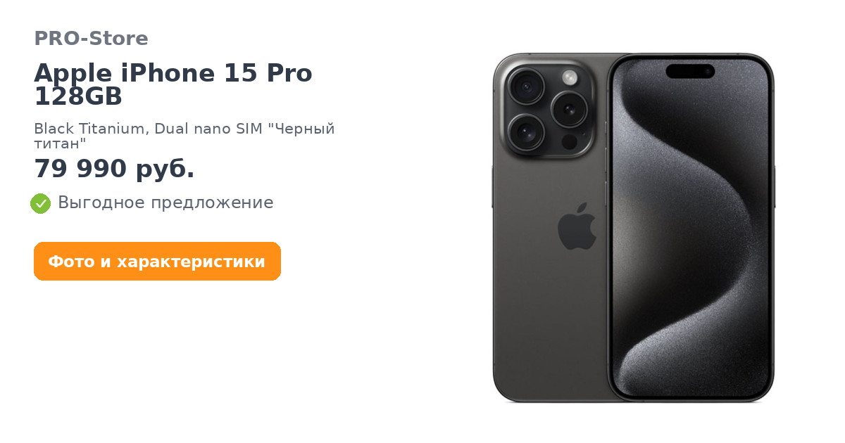 Apple iPhone 15 Pro 128GB, Black Titanium, Dual nano SIM "Черный титан"