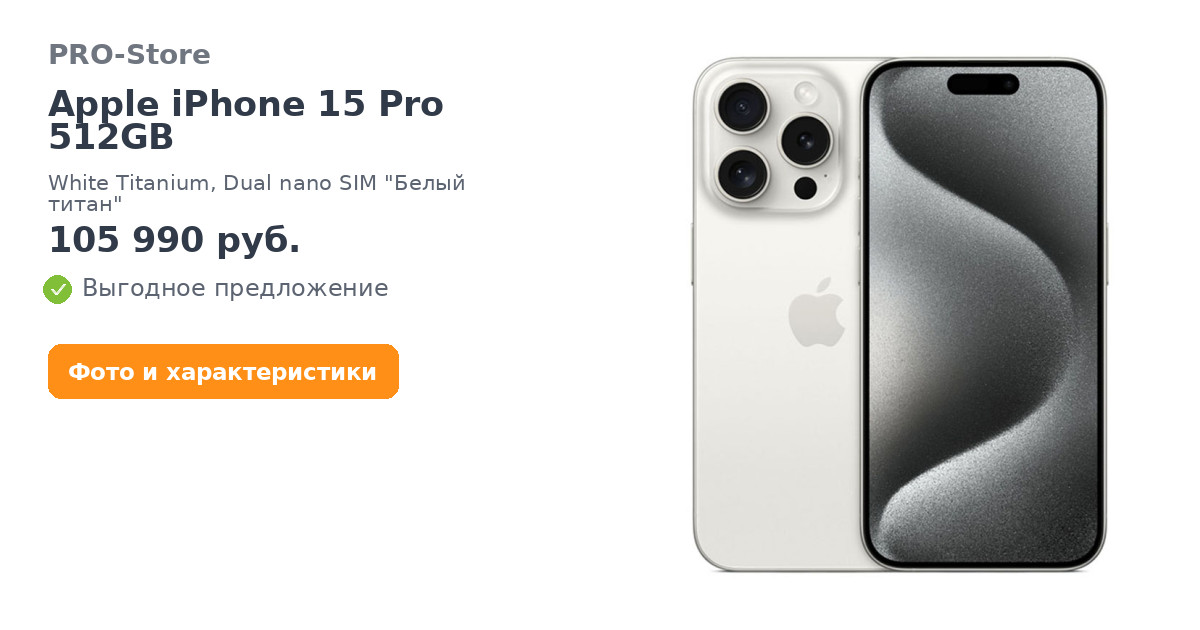 Apple iPhone 15 Pro 512GB, White Titanium, Dual nano SIM "Белый титан"