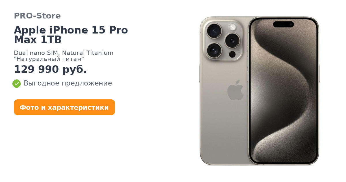 Apple iPhone 15 Pro Max 1TB, Dual nano SIM, Natural Titanium "Натуральный титан"