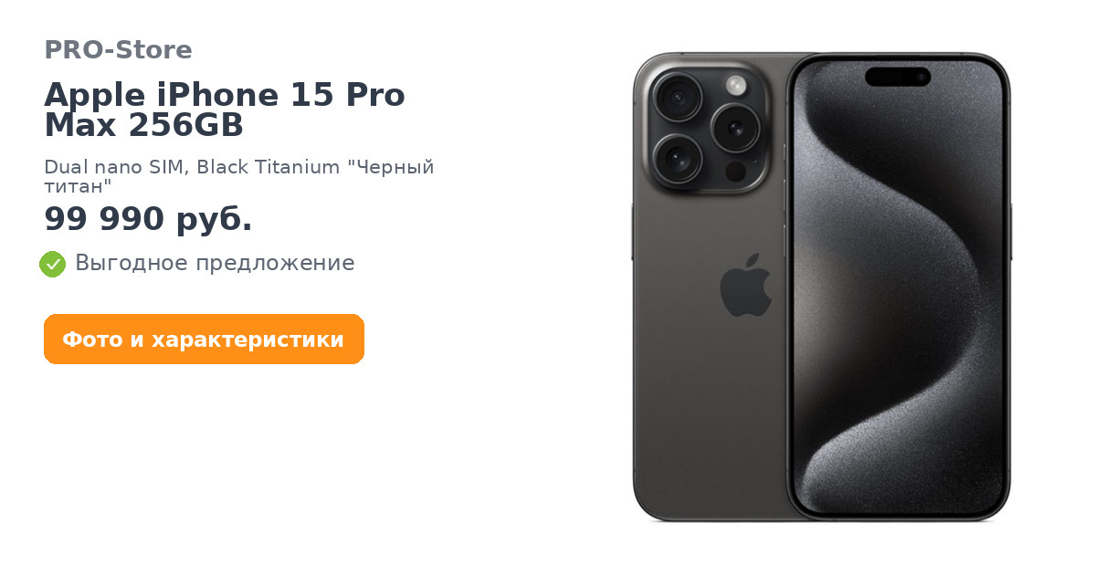 Apple iPhone 15 Pro Max 256GB, Dual nano SIM, Black Titanium "Черный титан"