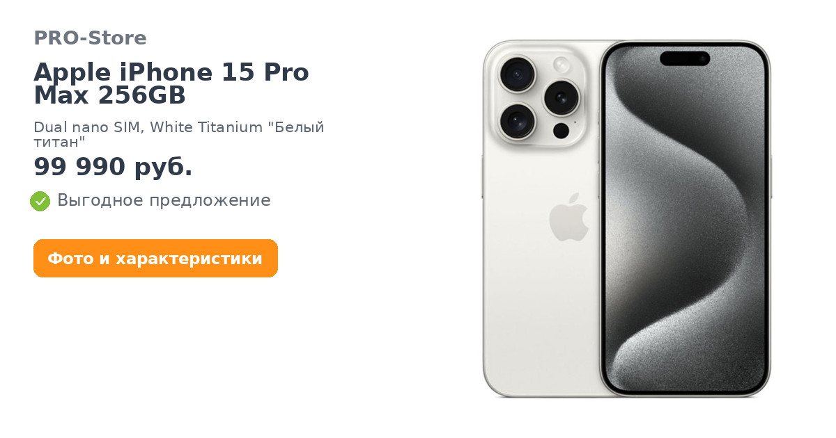 Apple iPhone 15 Pro Max 256GB, Dual nano SIM, White Titanium "Белый титан"