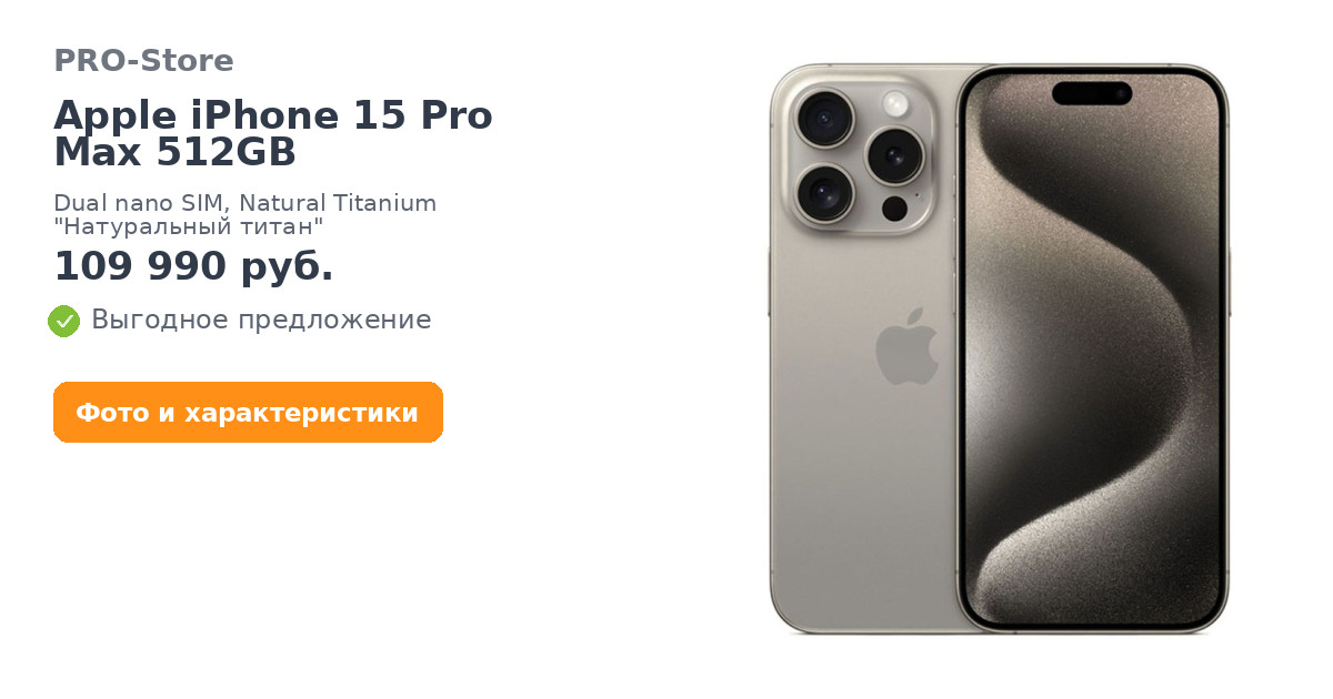 Apple iPhone 15 Pro Max 512GB, Dual nano SIM, Natural Titanium "Натуральный титан"