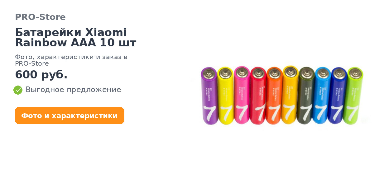 Батарейки Xiaomi Rainbow AAA 10 шт в наличии в интернет-магазине PRO-Store. Купите товар онлайн на сайте или можете заказать по телефону: 8 (800) 600-72-72. Быстрая доставка по Ставрополю и России. Оплата возможна в рассрочку. В нашем каталоге только оригинальная продукция.