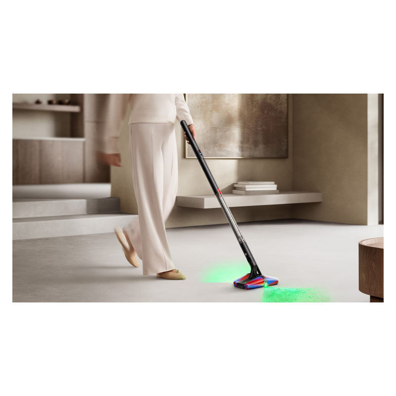 Эффективный двигатель Dyson создаёт мощность до 55AW — идеально для твёрдых полов и мелкой пыли.