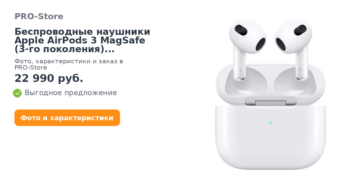Беспроводные наушники Apple AirPods 3 MagSafe (3‑го поколения) MME73RU/A