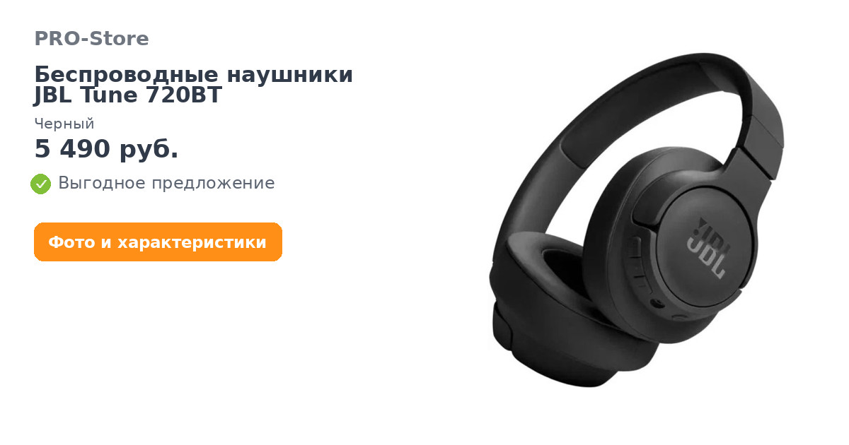 Беспроводные наушники JBL Tune 720BT, Черный