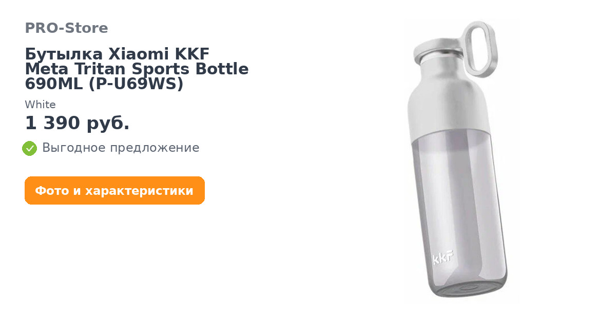KKF Meta Tritan Sports Bottle 690ML (P-U69WS) - стильная и функциональная бутылка для воды спортивная станет незаменимым спутником во время занятий спортом, в путешествии, на работе, учебе. Тритан, который используется для изготовления бутылки, очень прочный и долговечный материал, который выдерживает широкий диапазон температур.Фиксатор защитит от случайного открытия в сумке. Герметичные вставки исключают протекание. Бутылка оснащена ремешком для подвешивания, который при желании можно снять.