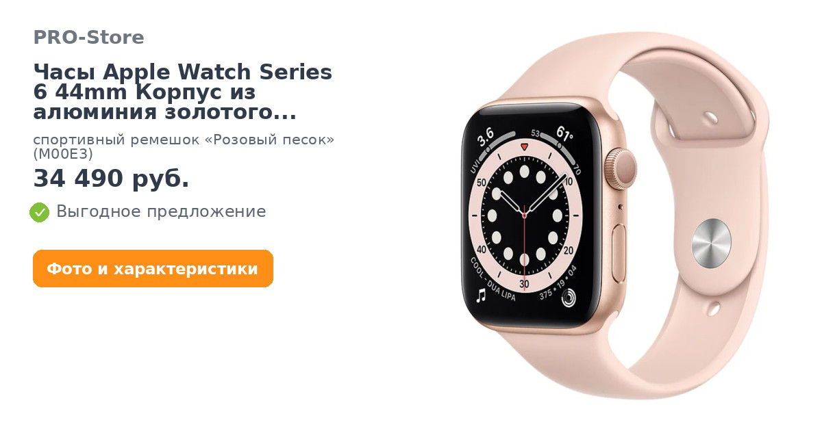 Часы Apple Watch Series 6 44mm Корпус из алюминия золотого цвета, cпортивный ремешок «Розовый песок» (M00E3)
