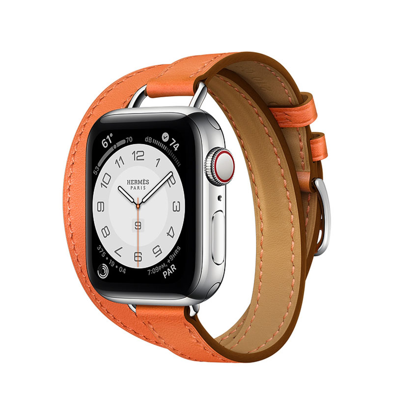часы apple watch series 6 hermès 40mm корпус из стали серебристого цвета, оранжевый двойной кожаный ремешок (mg1w3)