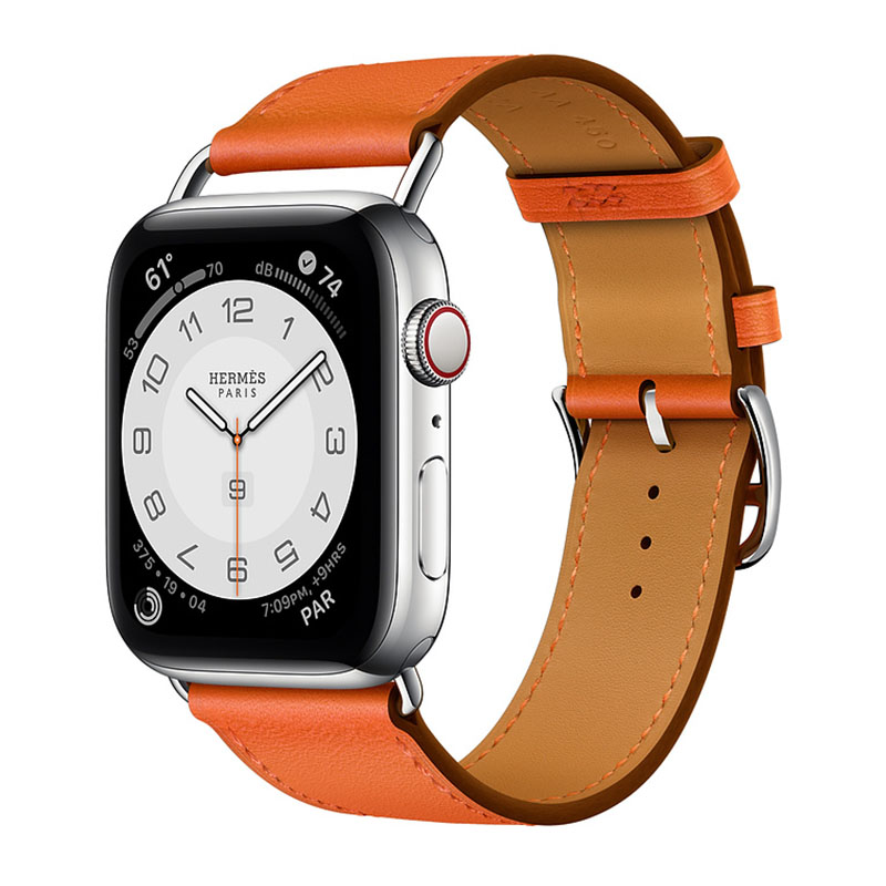 Часы Apple Watch Series 6 Hermès 44mm Корпус из стали серебристого цвета, оранжевый кожаный ремешок (MG223)