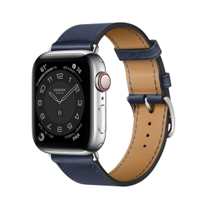 Часы Apple Watch Series 6 Hermès 40mm Корпус из стали серебристого цвета, синий кожаный ремешок (MGWM3)
