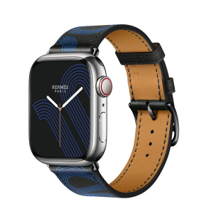 Часы Apple Watch Series 7 Hermes 41 мм, серебристый, кожаный черный ремешок с синим узором