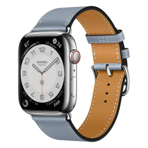 Часы Apple Watch Series 7 Hermes 45 мм с кожаным ремешком голубого цвета