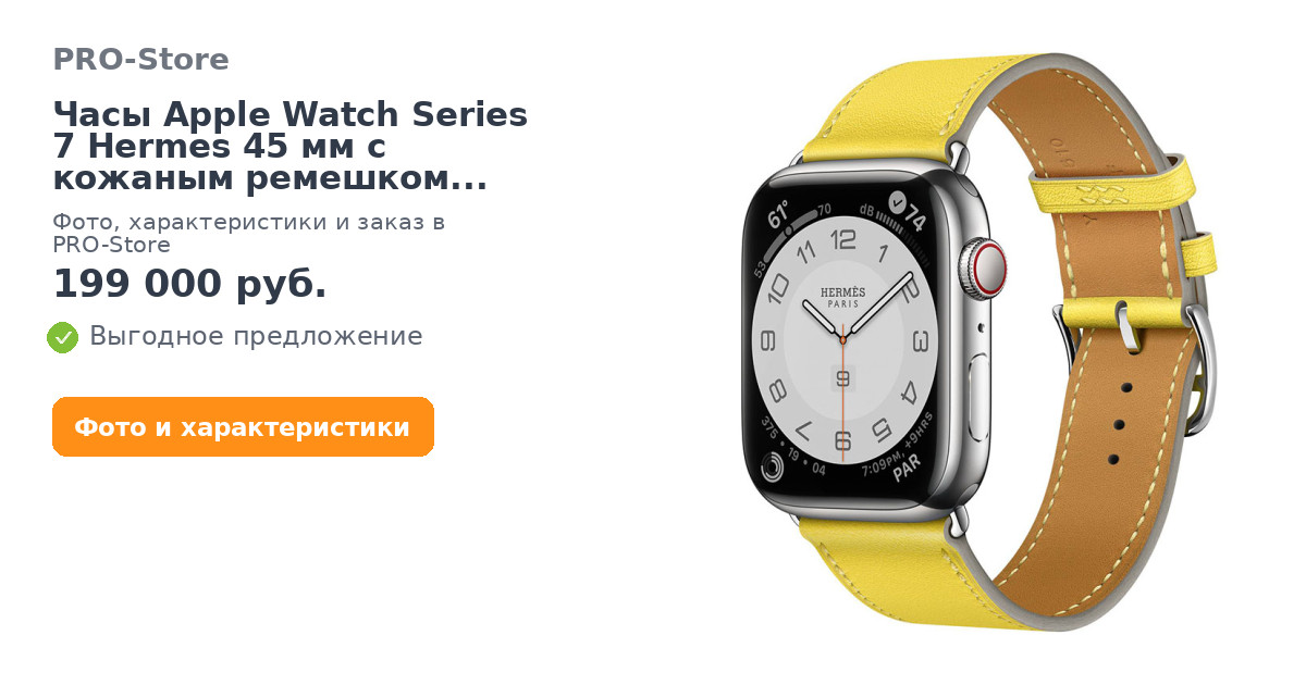 Часы Apple Watch Series 7 Hermes 45 мм с кожаным ремешком желтого цвета