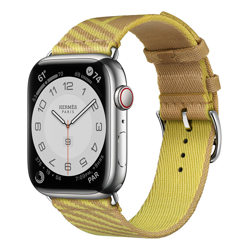 часы apple watch series 7 hermes 45 мм с нейлоновым ремешком бежевый/лайм
