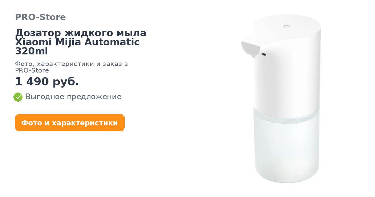 Дозатор жидкого мыла Xiaomi Mijia Automatic 320ml в наличии в интернет-магазине PRO-Store. Купите товар онлайн на сайте или можете заказать по телефону: 8 (800) 600-72-72. Быстрая доставка по Ставрополю и России. Оплата возможна в рассрочку. В нашем каталоге только оригинальная продукция.