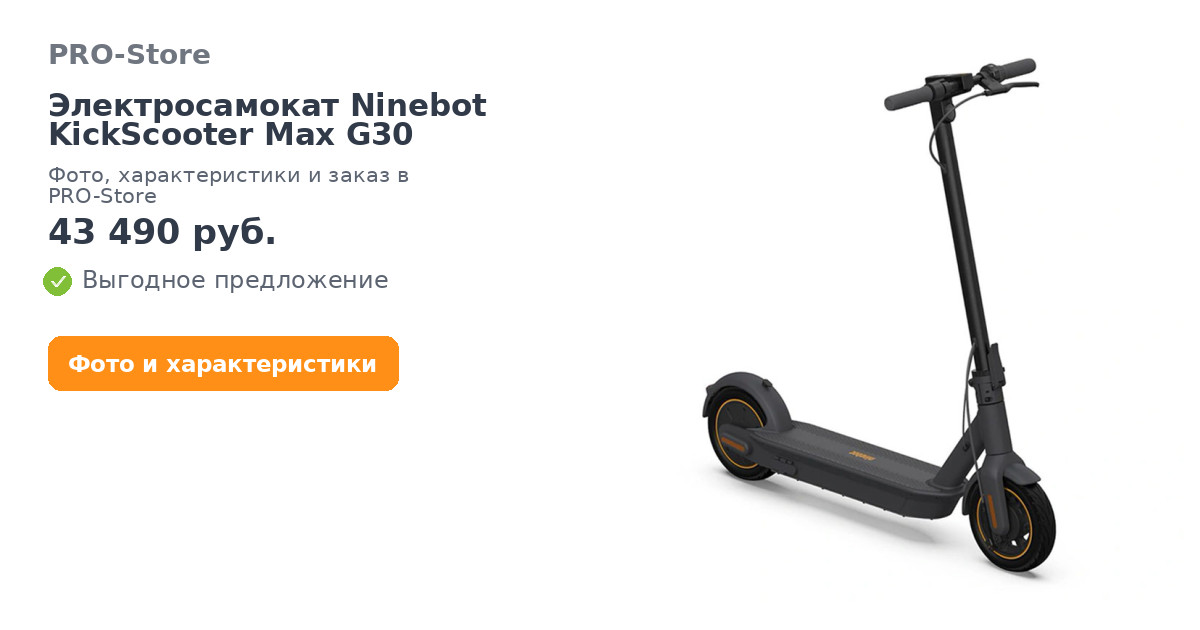 KickScooter MAX G30– флагман, который является продолжателем концепции Xiaomi Mijia M365, но с более высоким ценником. Всё потому, что модель надёжнее, мощнее, дольше держит заряд. Электроскутер компании Ninebot разработан совместно с инженерами «Сяоми» и лишен основных недостатков предшественника. Инженеры Ninebot разрабатывали Kickscooter MAX для рынка шерингового электротранспорта, однако для розничного потребителя самокат тоже привлекателен. При собственном весе 19,5 кг выдерживает нагрузку до 100 кг и развивает скорость до 25 км/ч. При грамотном планировании маршрута на нем можно добраться почти в любую точку Москвы, ведь дальность хода достигает 65 км, при этом данный самокат с завода не боится дождя и небольших луж, что позволяет передвигаться на нём даже в дождливую погоду.