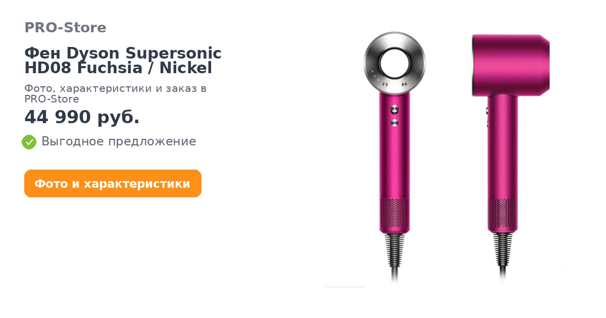 Фен Dyson Supersonic для волос – уникальный продукт и, наверное, самый совершенный фен в мире на сегодняшний день от компании Dyson. И дело не только в его супер-современном стильном дизайне и качественных материалах. Этот фен просто не имеет аналогов своим техническим характеристикам.