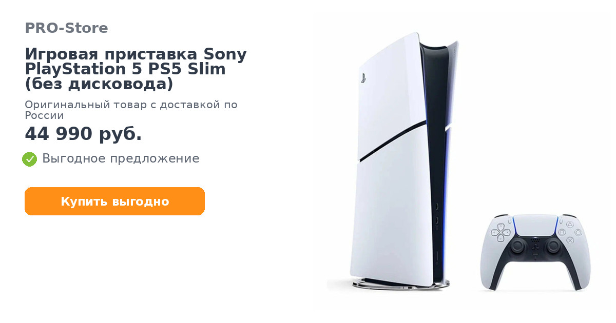 Игровая приставка Sony PlayStation 5 PS5 Slim (без дисковода)