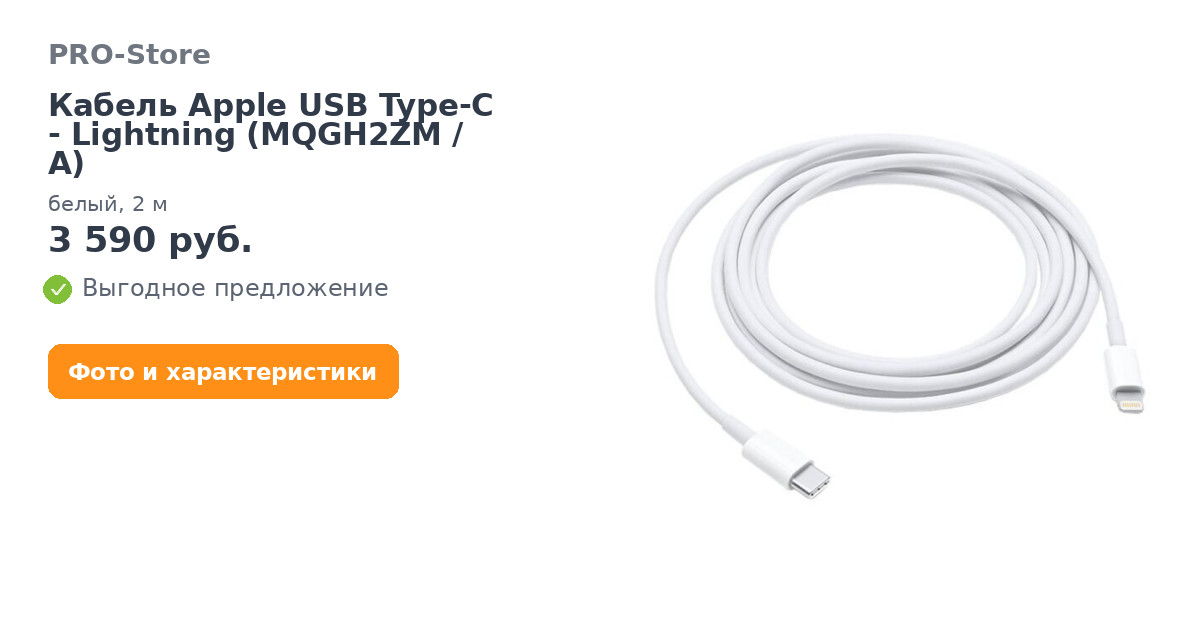 Кабель Apple USB Type-C - Lightning (MQGH2ZM/A), белый, 2 м