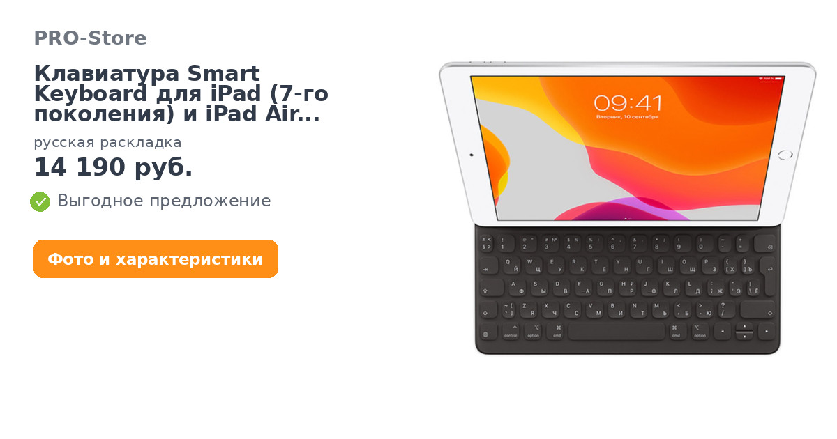С Клавиатура Smart Keyboard для iPad (7‑го поколения) и iPad Air (3‑го поколения), русская раскладка покупают