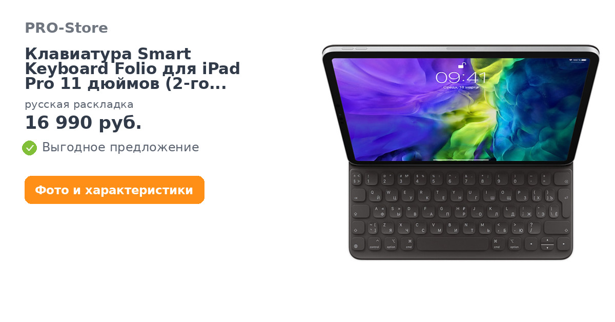 Клавиатура Smart Keyboard Folio для iPad Pro 11 дюймов (2‑го поколения) MXNK2, русская раскладка