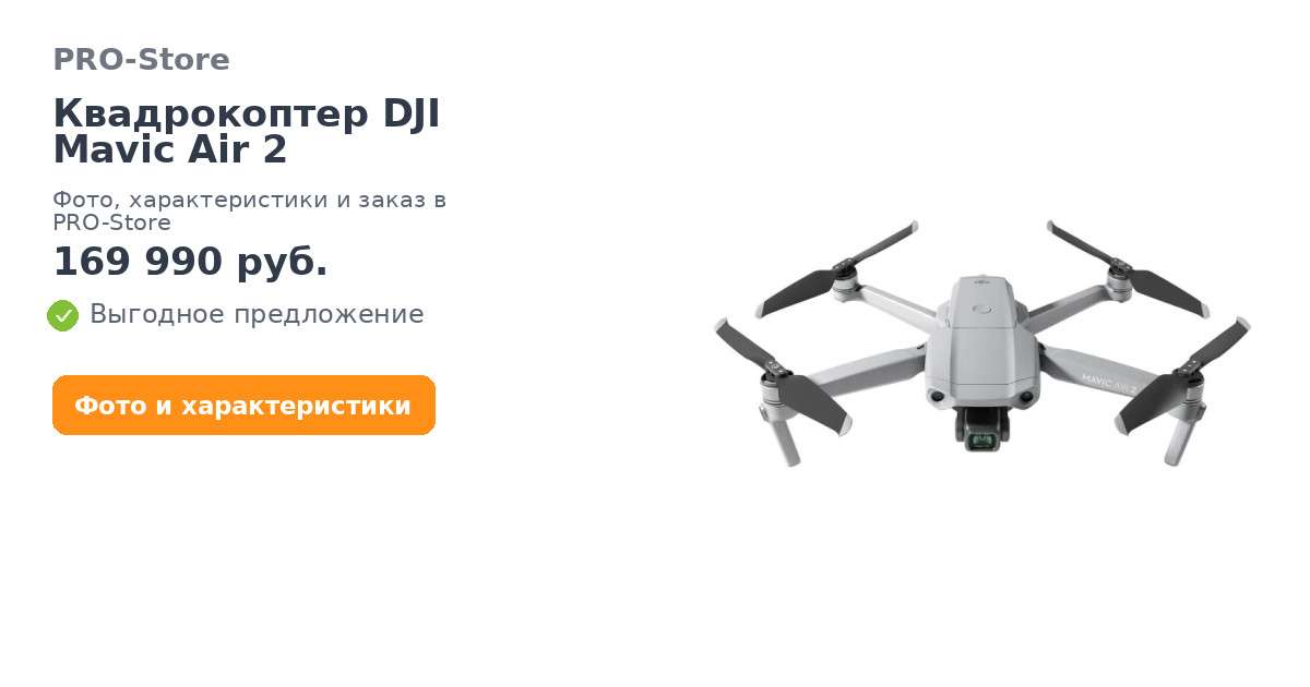 Mavic Air 2 выводит мощность и портативность на новый уровень, предлагая расширенные функции в компактном форм-факторе. Интеллектуальные функции съемки и превосходное качество изображения делают воздушные шедевры доступными. Безопасный и умный полет позволит вам улучшить свою игру и в то же время наслаждаться творческим процессом.