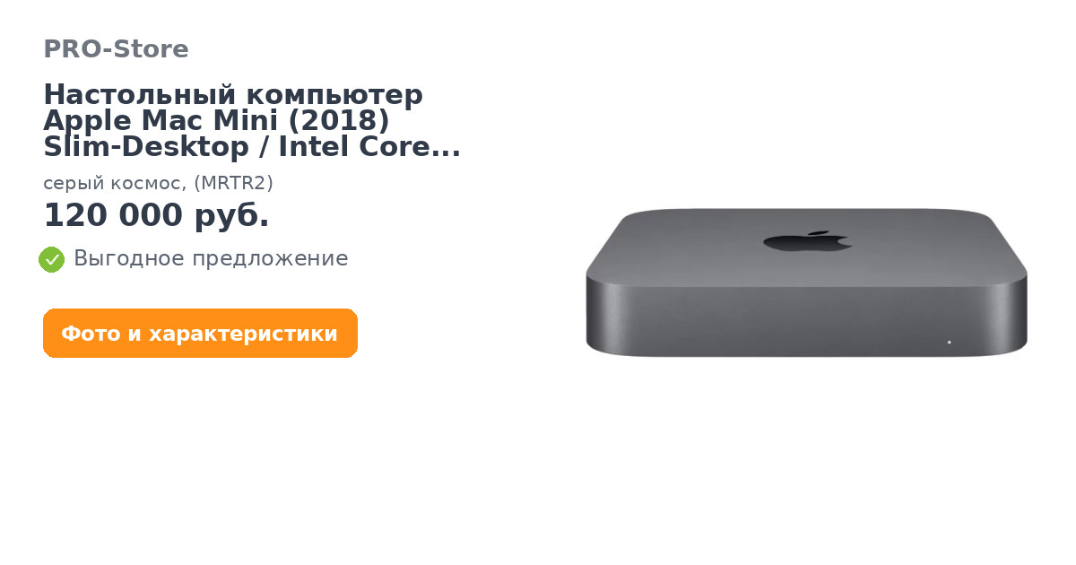 Настольный компьютер Apple Mac Mini (2018) Slim-Desktop/Intel Core i3-8100/8 ГБ/128 ГБ SSD/Intel UHD Graphics 630/OS X, серый космос, (MRTR2)