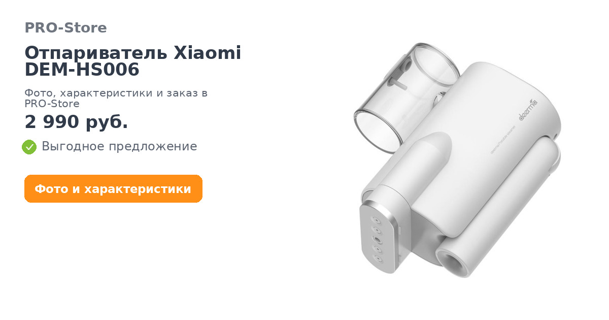 Отпариватель Xiaomi DEM-HS006 в наличии в интернет-магазине PRO-Store. Купите товар онлайн на сайте или можете заказать по телефону: 8 (800) 600-72-72. Быстрая доставка по Ставрополю и России. Оплата возможна в рассрочку. В нашем каталоге только оригинальная продукция.