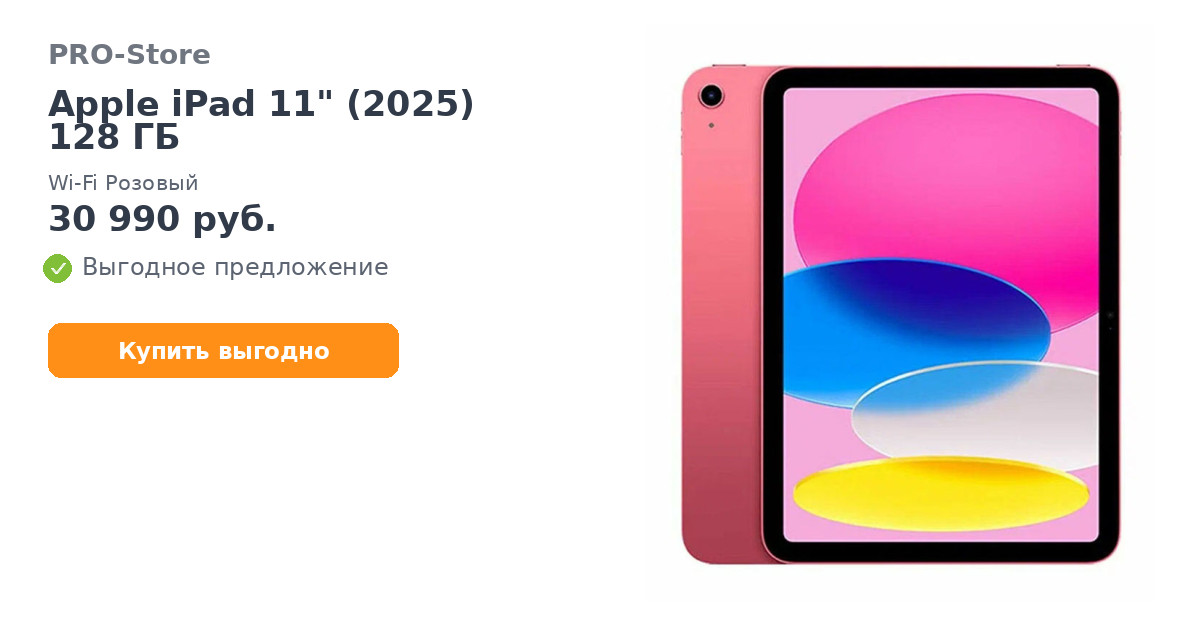 Планшет Apple iPad 11" (2025) 128 ГБ, Wi-Fi Розовый