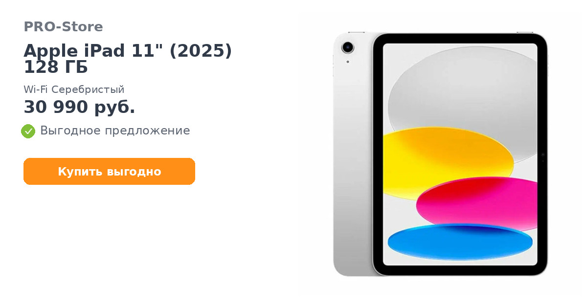 Планшет Apple iPad 11" (2025) 128 ГБ, Wi-Fi Серебристый