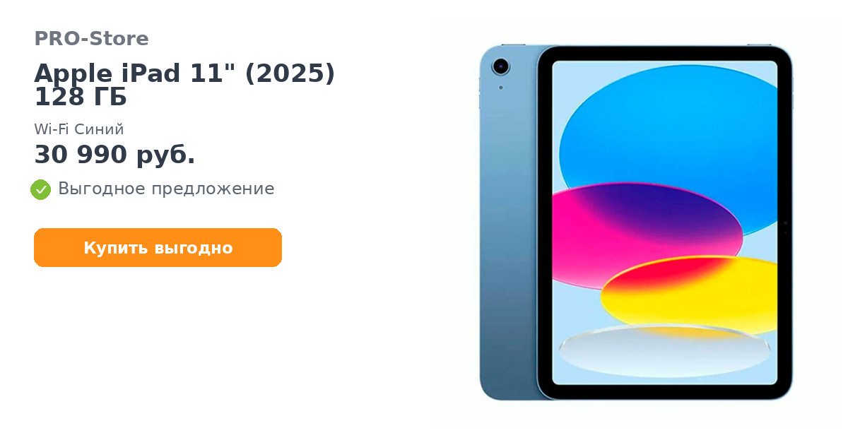 Планшет Apple iPad 11" (2025) 128 ГБ, Wi-Fi Синий