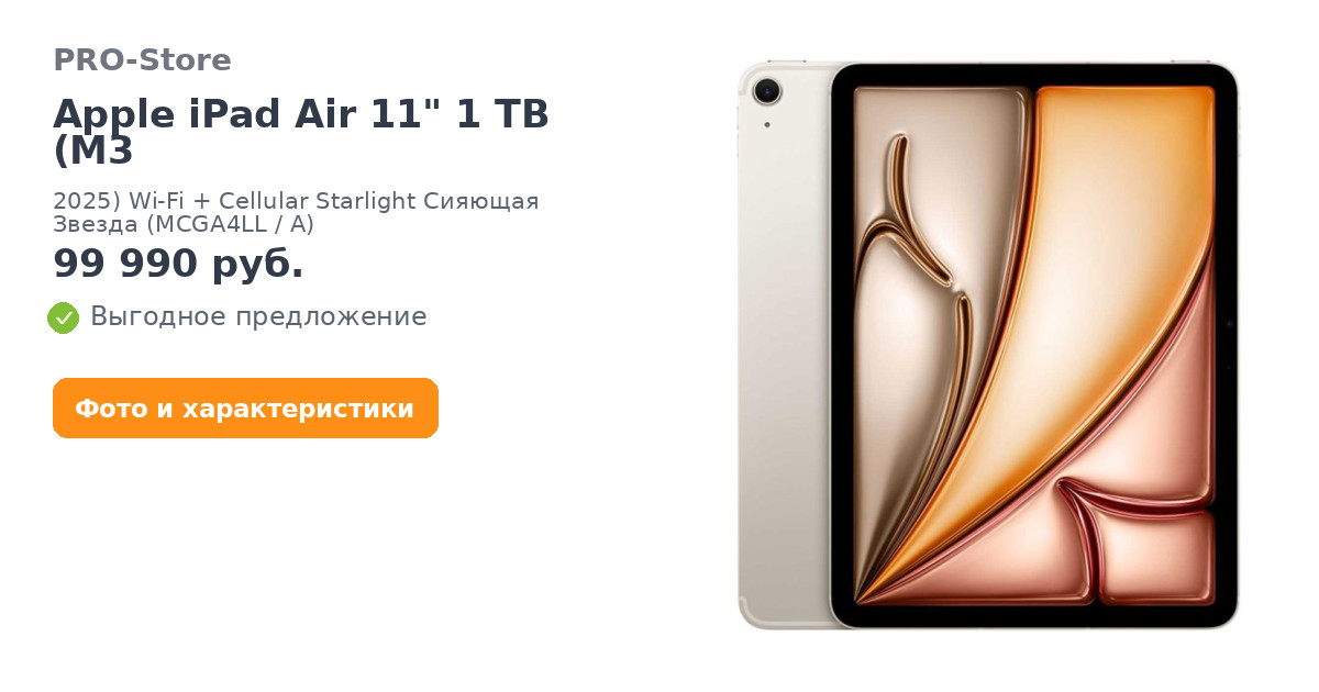 Планшет Apple iPad Air 11" 1 TB (M3, 2025) Wi-Fi + Cellular Starlight Сияющая Звезда (MCGA4LL/A)