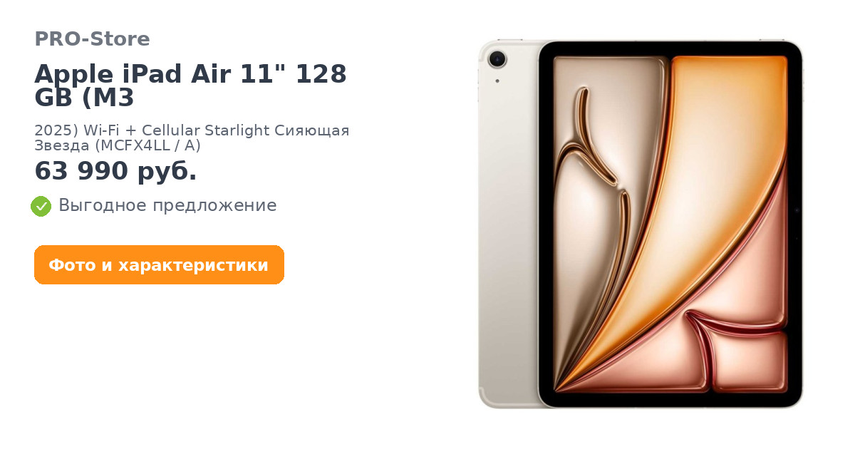 Планшет Apple iPad Air 11" 128 GB (M3, 2025) Wi-Fi + Cellular Starlight Сияющая Звезда (MCFX4LL/A)