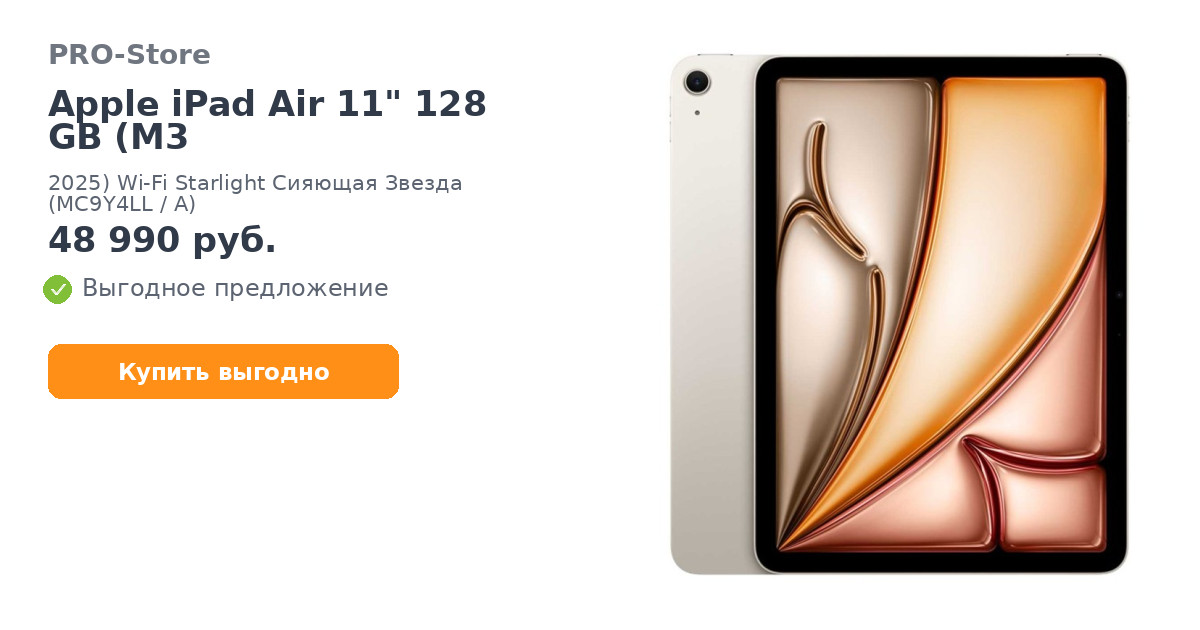 Планшет Apple iPad Air 11" 128 GB (M3, 2025) Wi-Fi Starlight Сияющая Звезда (MC9Y4LL/A)