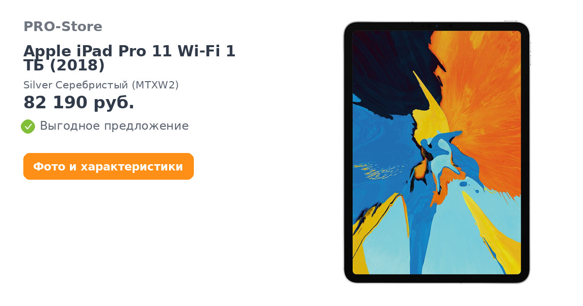 Планшет Apple iPad Pro 11 Wi-Fi 1 ТБ (2018) Silver Серебристый (MTXW2)