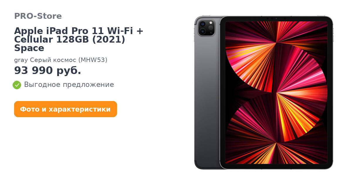 Это высший уровень iPad. Теперь с потрясающей производительностью чипа M1, великолепным дисплеем Liquid Retina XDR 11 дюйма и поддержкой быстрой беспроводной связи.◊ Полный вперёд.