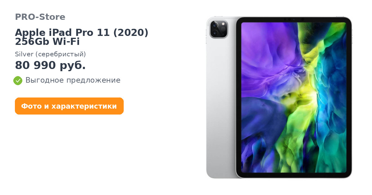 Планшет Apple iPad Pro 11 (2020) 256Gb Wi-Fi Silver (серебристый)