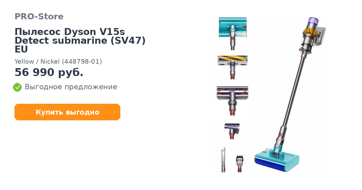 Пылесос Dyson V15s Detect submarine (SV47) EU, Yellow/Nickel (448798-01)