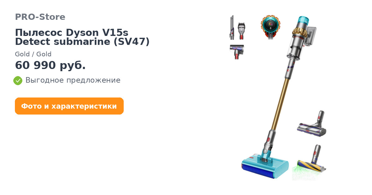 Пылесос Dyson V15s Detect submarine (SV47), Gold/Gold