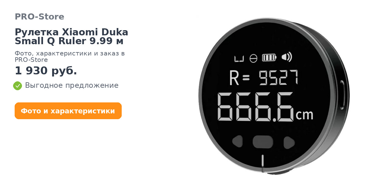 Умная рулетка Duka Small Q Ruler Black – это инструмент, с помощью которого можно измерять любые поверхности, причем не только по прямой, но и по окружности. В корпусе электронной рулетки встроен измерительный ролик, который при прокатке устройства по поверхности измеряет расстояние вплоть до миллиметров. Рулетка отлично подходит для измерения неровных поверхностей.Для любых поверхностей