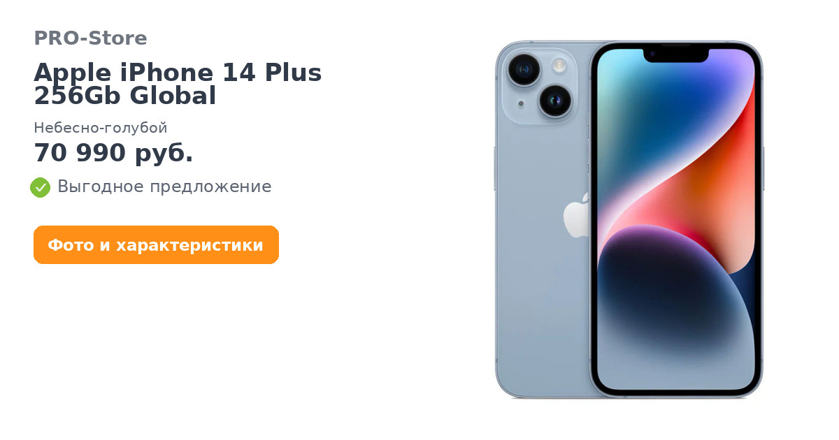 Apple iPhone 14 Plus 256Gb Global, Небесно-голубой