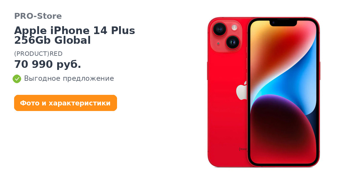 Apple iPhone 14 Plus 256Gb Global, (PRODUCT)RED