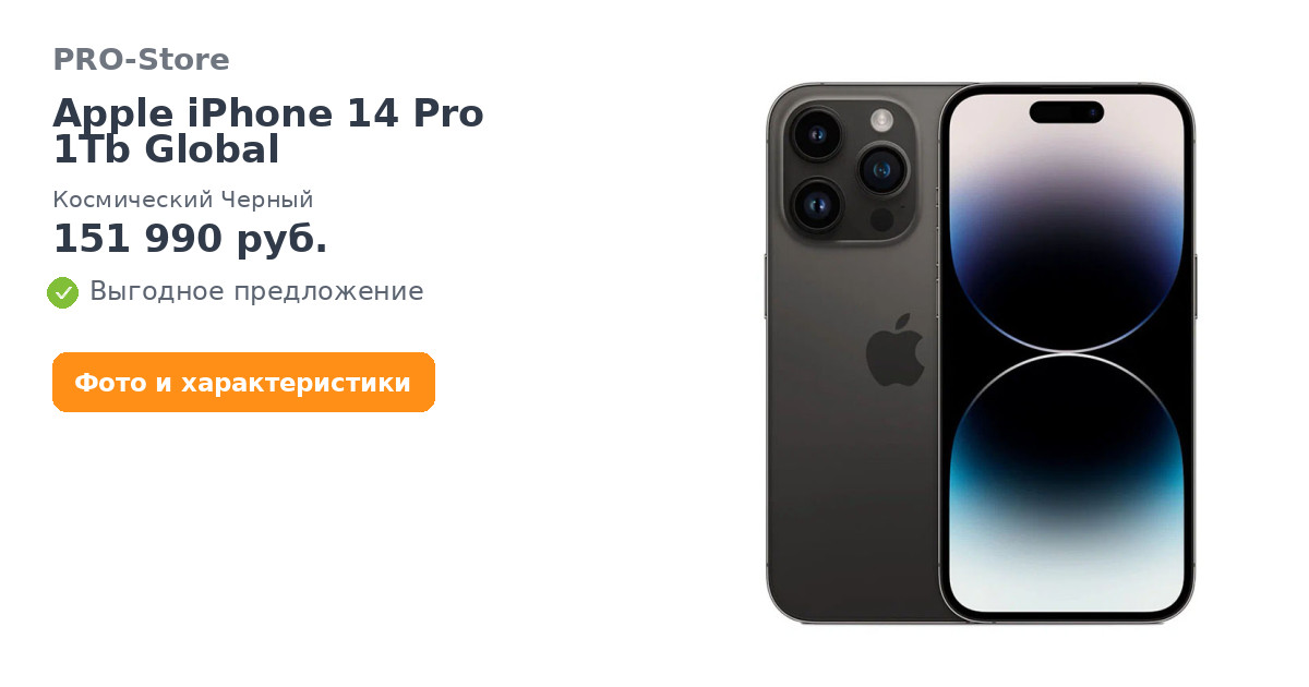 Apple iPhone 14 Pro 1Tb Global, Космический Черный