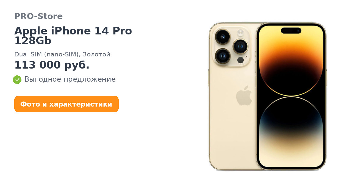 Apple iPhone 14 Pro 128Gb, Dual SIM (nano-SIM), Золотой