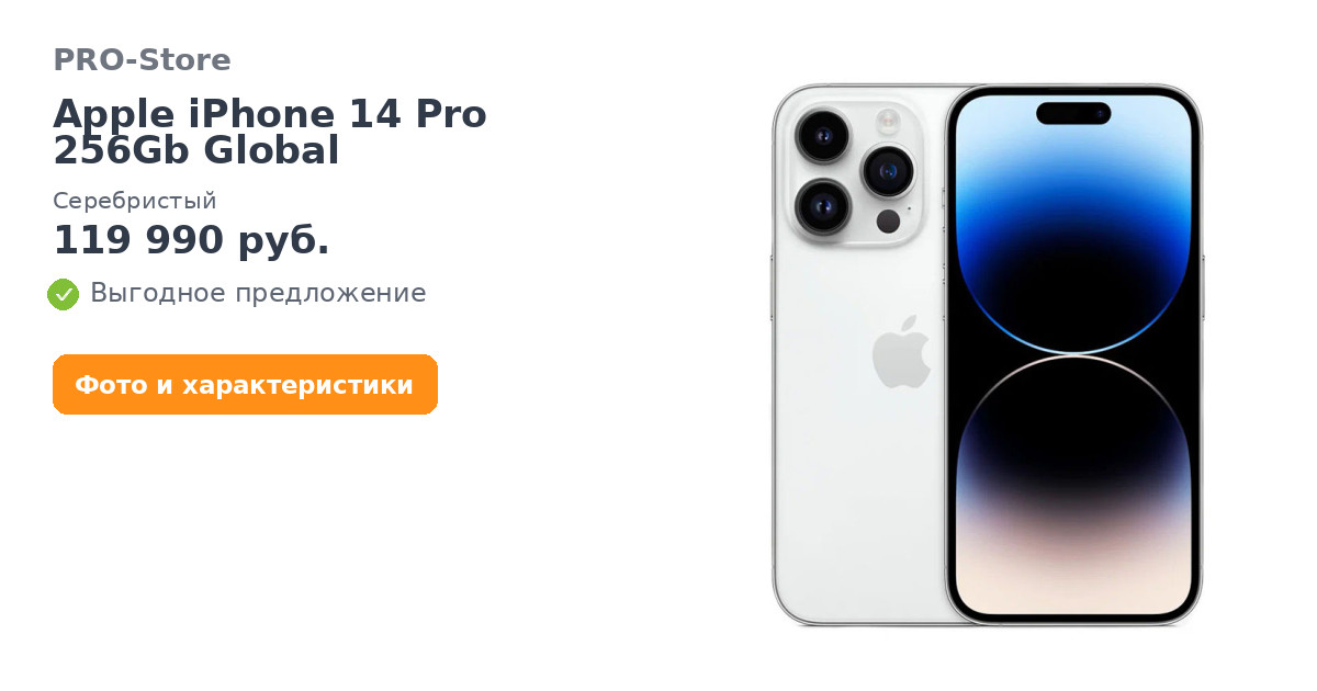 Apple iPhone 14 Pro 256Gb Global, Серебристый