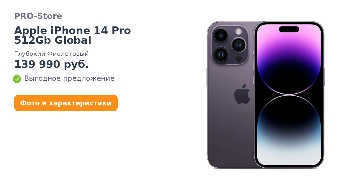 Apple iPhone 14 Pro 512Gb Global, Глубокий Фиолетовый