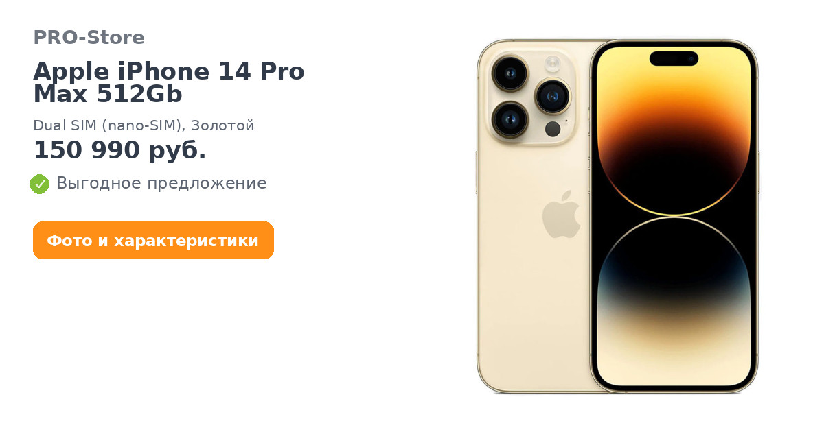 Apple iPhone 14 Pro Max 512Gb, Dual SIM (nano-SIM), Золотой